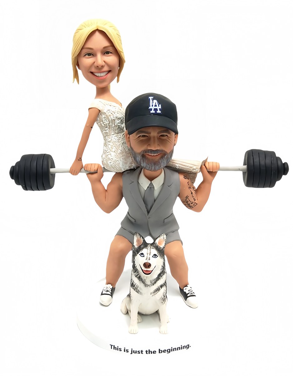 Select this sample cake toppers body and allow us to hand sculpt the head to resemble the photograph that you provide to us.